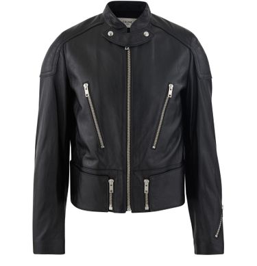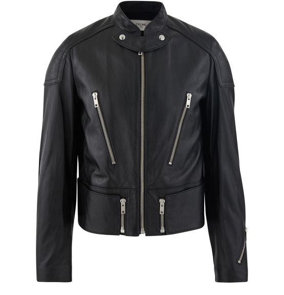 Give in to temptation with this long-sleeved Racer style jacket from Celine. This is made in soft lamb's leather. It is padded on the shoulders and all over the forearms. Its multiple zipped fastenings, particularly on the waist and the sleeve, and its collar with snap button fastenings give it a dark, rock look. Its lining is made of cupro.