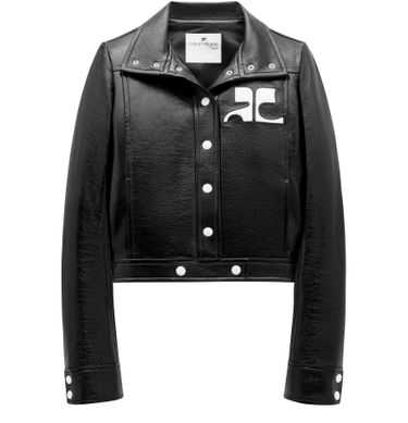 Reveal Courreges's cropped casual jacket, designed with a modern silhouette and button fastening. The long sleeves and topstitched edges add refined structure, while the front logo delivers signature flair. Versatile for day or night, this piece seamlessly elevates any look with its contemporary edge.