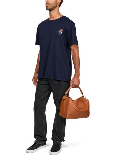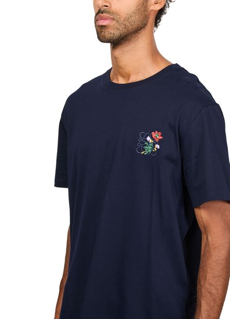 Reveal Loewe's relaxed fit T-shirt in cotton, a true wardrobe staple. This top features a crew neck and short sleeves, adorned with exquisite floral embroidery and an embroidered chest logo, adding a touch of elegance. Perfect for pairing with jeans or skirts for a stylish look.