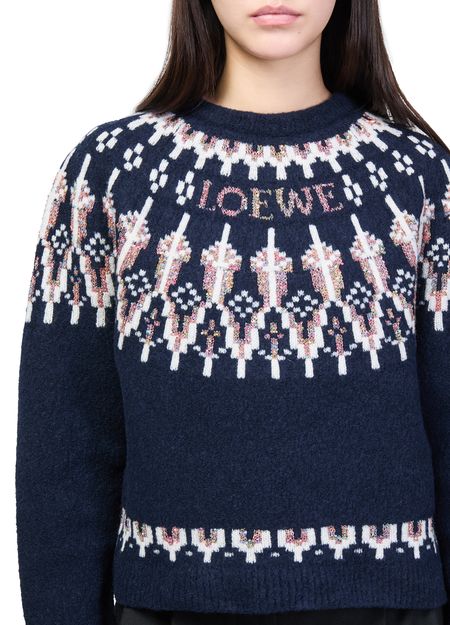 Reveal Loewe's round-neck wool blend sweater, crafted from warm fabric with a modern geometric detail and an embroidered front logo. The long sleeves and classic neckline offer a refined silhouette, making this sweatshirt a versatile choice for both casual and elevated looks.