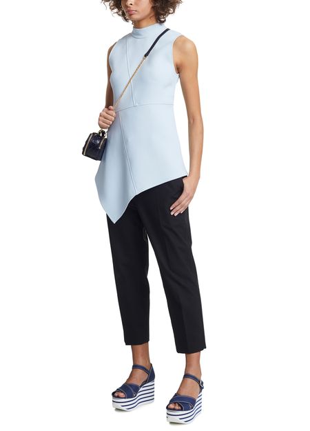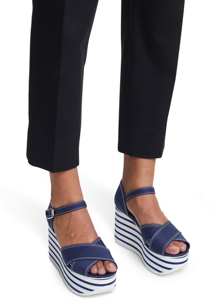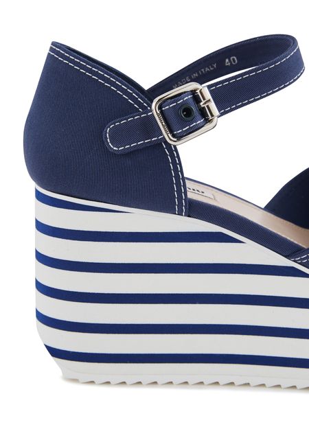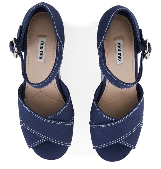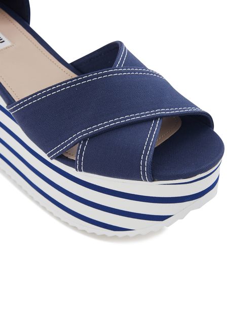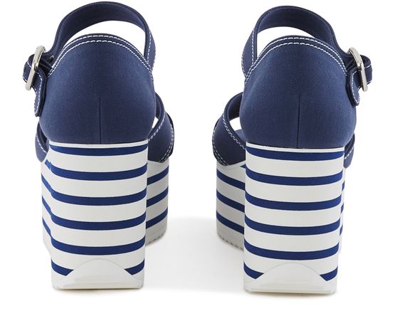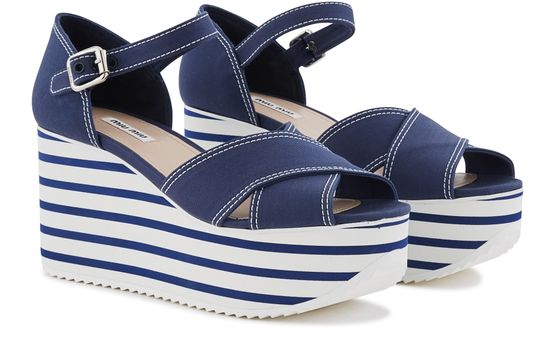 These platform sandals by Miu Miu have a nautiical look. They are made of leather and feature a thick notched platform sole to give you extra height with no sacrifice on comfort.