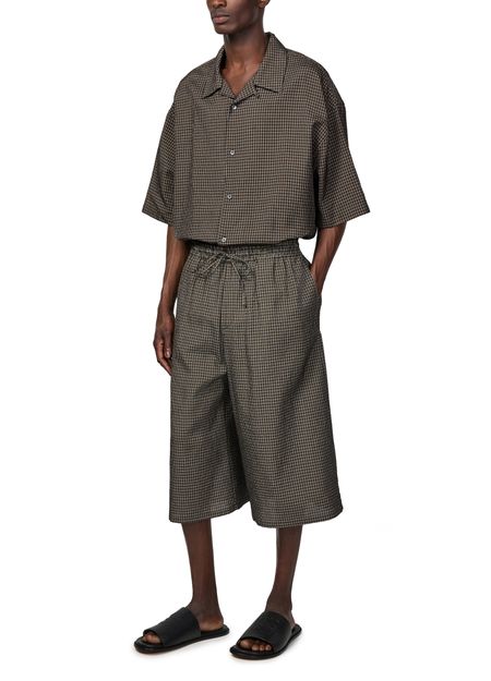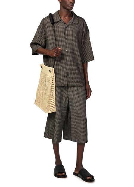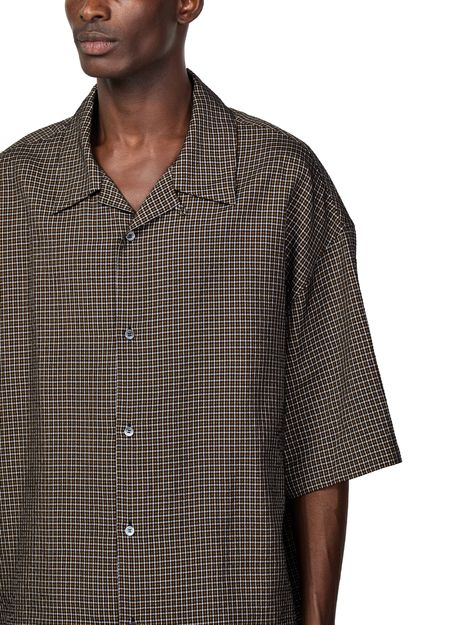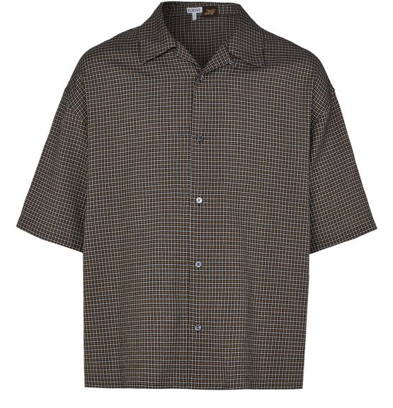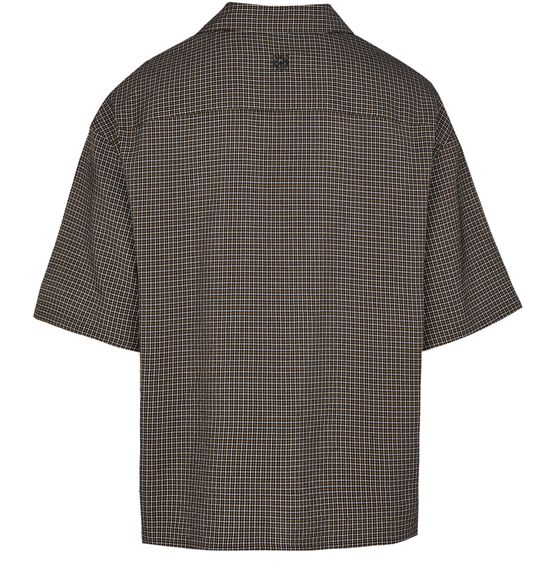 Description : checked pattern, front buttoned closure, visible stitching, logo at the back, embroidered logo, short-sleeved, v-neck, shirts, shirt collar, casual shirts.
