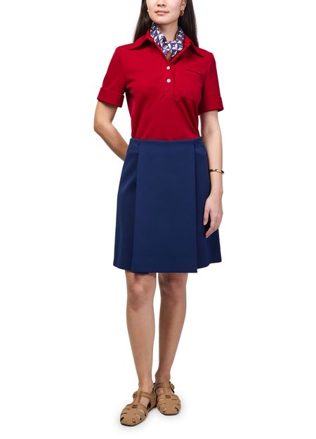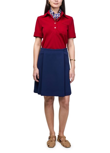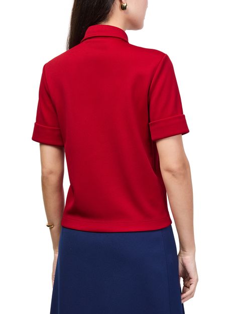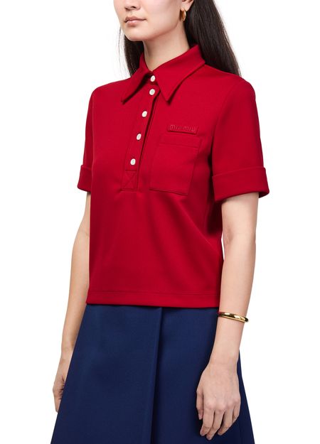 Reveal Miu Miu's short-sleeved polo shirt, featuring a refined front buttoned closure and a distinctive decorative label with the iconic logo. The tailored silhouette and practical breast pocket make this top a versatile choice, seamlessly blending sophistication with everyday ease.