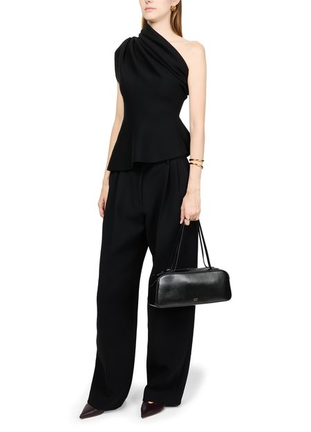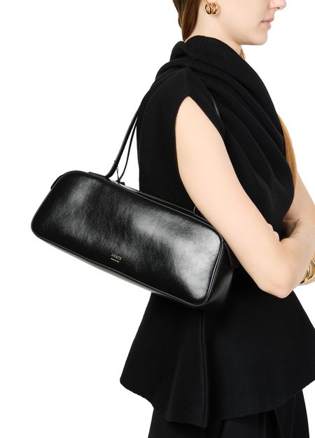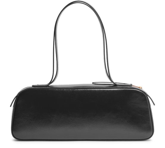 Discover Khaite's Simona bag, a striking piece crafted from smooth calf leather. This shoulder bag boasts double handles and a single compartment, secured with a sleek zipper closure. Visible topstitching enhances its refined aesthetic, making it a perfect blend of elegance and practicality.
