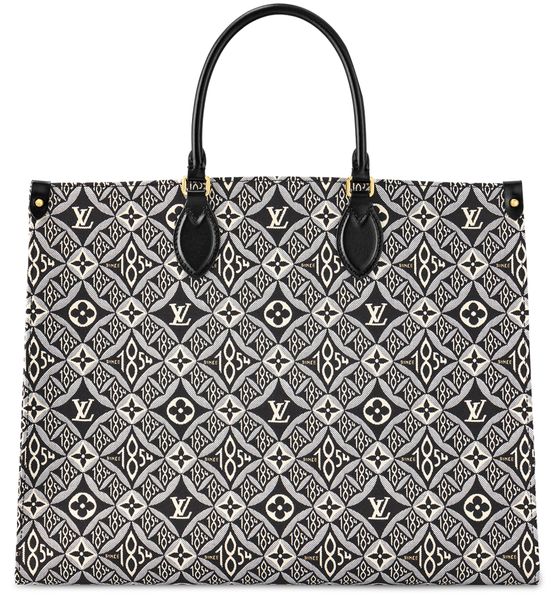 Nicolas Ghesquière brings his new Jacquard Since 1854 textile onto the OnTheGo GM tote. This woven textile is inspired by vintage wallpaper patterns and features Monogram Flowers and the number 1854, the year of the House’s founding. With two sets of handles, long and short, and a spacious interior, this is a versatile everyday bag.