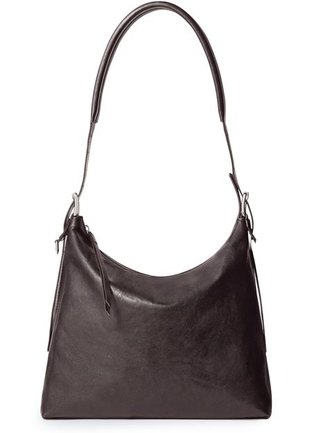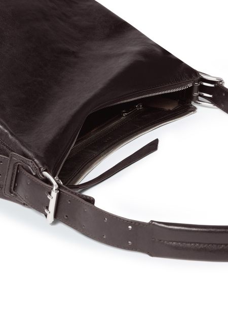 Reveal Lemaire's hobo bag, crafted from smooth leather with a single handle for effortless sophistication. The visible stitching and metal finish add refined detail, while a zipper closure secures your essentials in a single compartment. Experience modern design and functional elegance in every element.