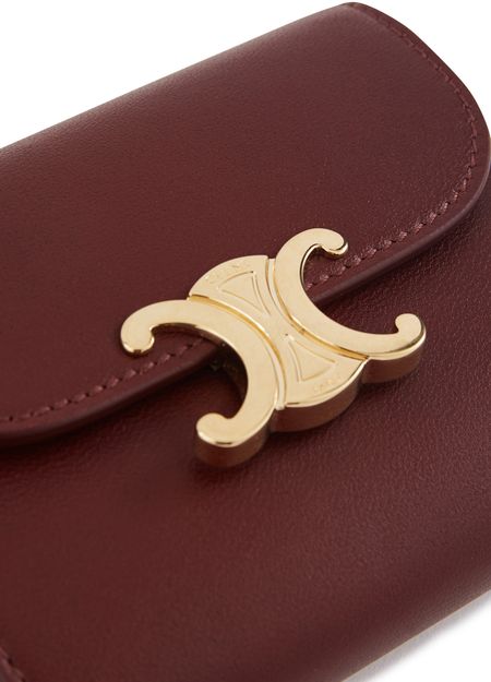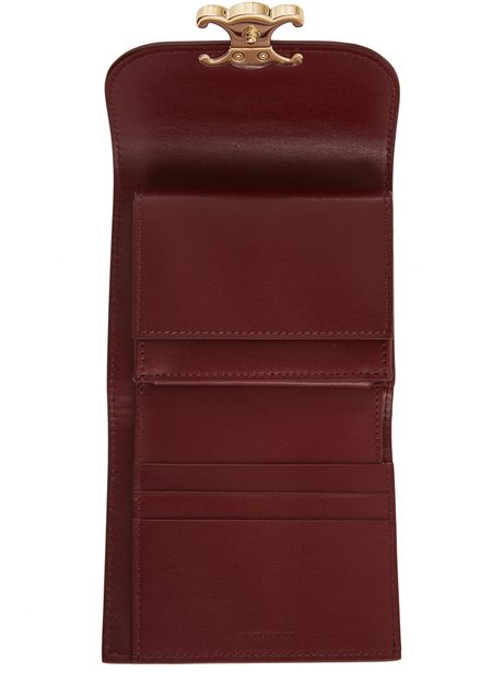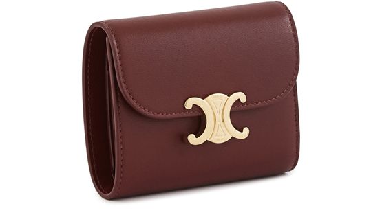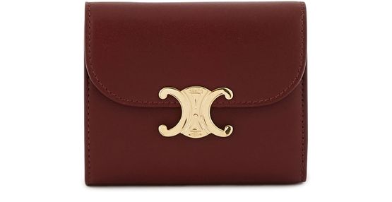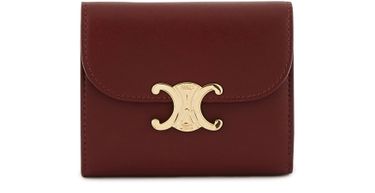 Featuring five card slots, a bill compartment, a flat pocket and a flap pocket, this small, calfskin-lined Triomphe smooth lambskin wallet is adorned with the Celine signature metal snap fastening.,