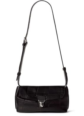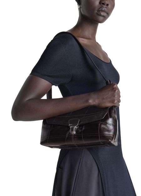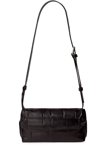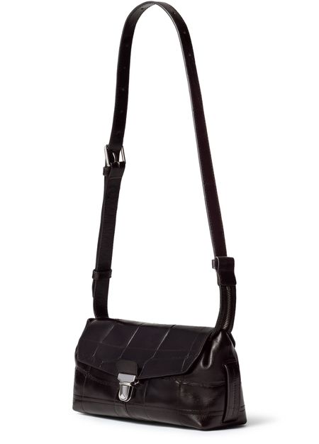 Reveal Lemaire's crocodile print crossbody bag, where a refined flap closure meets a thin, adjustable strap for versatile wear. Silver-finish hardware and visible topstitching add a modern edge, making this piece a standout for those who appreciate sleek, functional design.