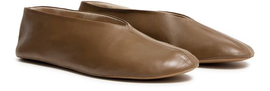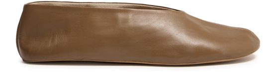 Discover The Row's Stella ballet flats, crafted in smooth leather with a chic round toe and a sleek pull-on design. These elegant flats feature a logo-printed insole, making them a sophisticated choice for any occasion.
