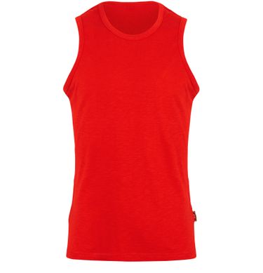 We like the loose, casual fit of this tank top from the Ami brand. It is made of a mixture of calfskin and cotton leather.