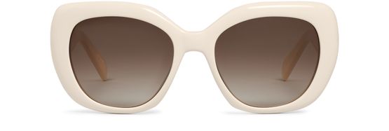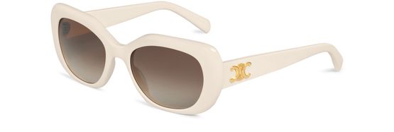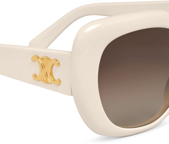 Celine's Triomphe 06 sunglasses embody effortless sophistication with their oversized acetate frame. Featuring smoke lenses that shield against harmful rays, they offer both style and protection. The signature Triomphe emblem elegantly adorns the temples, making these sunglasses a statement piece for those who appreciate luxury and timeless design.