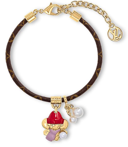 As vibrant and adventurous as ever, Louis Vuitton’s famous mascot is ready to enjoy some winter fun in the Vivienne Snow bracelet. Dangling from a Monogram canvas cord, Vivienne is shown preparing to throw a pearly white snowball. And to keep warm, she comes decked out in an array of LV accessories for an extra signature touch.