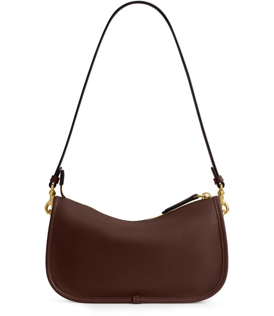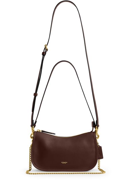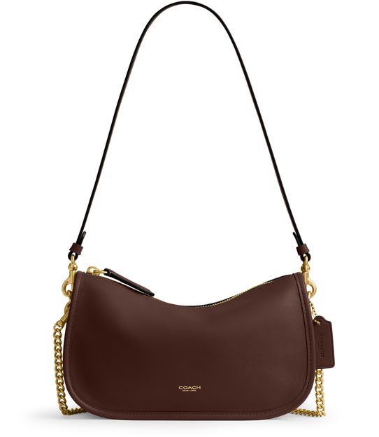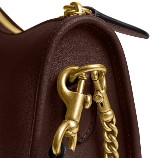 Reveal Coach's shoulder bag, where a decorative label with an embossed Coach logo and gold-finish accents create a refined statement. The single handle and chain strap offer versatile carrying options, while visible stitching and a zipper closure ensure both style and security for your essentials.