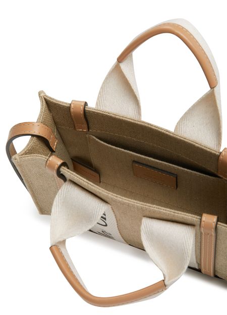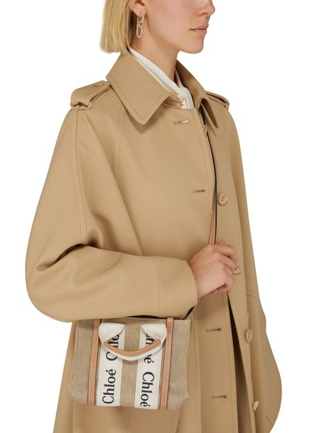 The Woody mini tote bag from Chloé features practicality and style with its versatile design. It includes handles, along with Chloé lettering and an appliquéd logo. The single compartment and interior patch pocket offer ample storage. It can be hand carried, worn on the shoulder, or as a crossbody. The height of the handle is 8 cm, and the length of the adjustable shoulder strap...