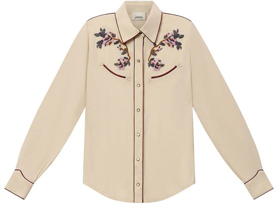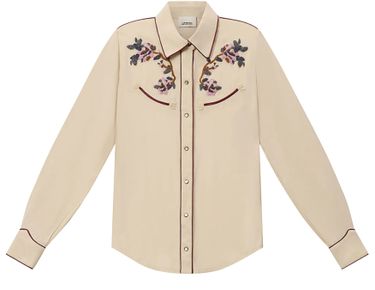 Reveal Isabel Marant's Yzea shirt, a refined top featuring long sleeves and delicate floral embroidery. The button fastening adds a polished touch, while the elegant silhouette ensures effortless pairing with both tailored trousers and casual denim for versatile, modern styling.