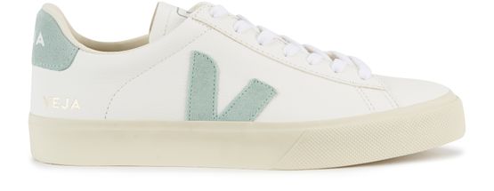 Veja's Campo sneakers showcase a sleek lace-up design, highlighted by visible stitching that adds character. The iconic appliquéd logo stands out, complemented by a printed logo for a modern touch. With a flat wedge sole, these shoes offer both style and comfort for everyday adventures.