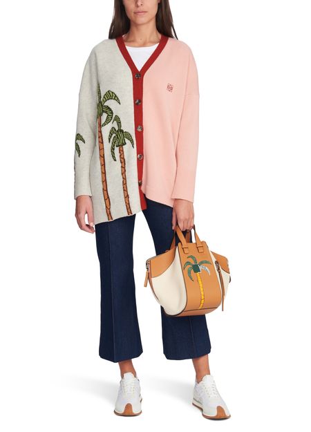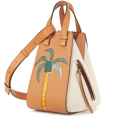 With the La Palme small Hammock bag, Loewe presents another leather accessory from the Ken Price Collection. A figurative, colored print from the work of American artist Ken Price brings a contemporary and colorful look to this piece. The short handle ensures that this small bag with a soft flap is ideal for keeping all those little essentials close at hand.