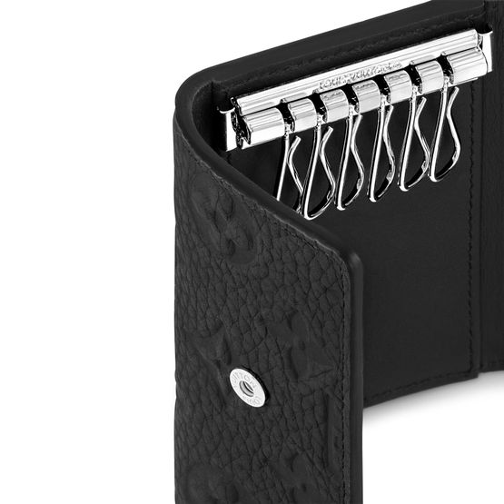 This 6 Key Holder is fashioned from full-grained Taurillon leather with the LVs and Monogram Blossoms of the Monogram pattern tastefully embossed into the cowhide. As practical as it is stylish, it holds six keys and closes with a snap.