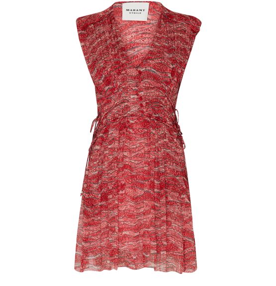 Etoile Isabel Marant's Anawa dress is a captivating mini dress with a v-neck and sleeveless design. Its fitted waist and a-line cut create a flattering silhouette. The all-over print is enhanced by visible stitching and belt loops, while the appliquéd logo adds a touch of elegance to this chic piece.
