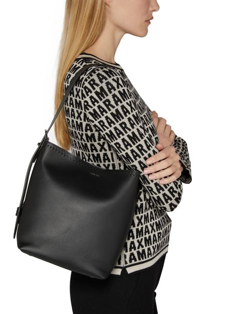 Max Mara's Archetipo shoulder bag features a sleek design with a single compartment for all your essentials. It is adorned with a front logo and secured with a snap-button fastening. The bag can be carried with the single handle or worn on the shoulder with the adjustable wide strap for added versatility.