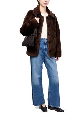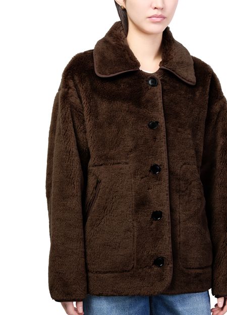 Introducing Citizens' Astrid Sherpa jacket, a stylish piece that redefines casual elegance. This short, boxy fit jacket features a button fastening and long sleeves, offering a blend of comfort and sophistication. Patch pockets add practical flair, making it a versatile addition to any wardrobe.