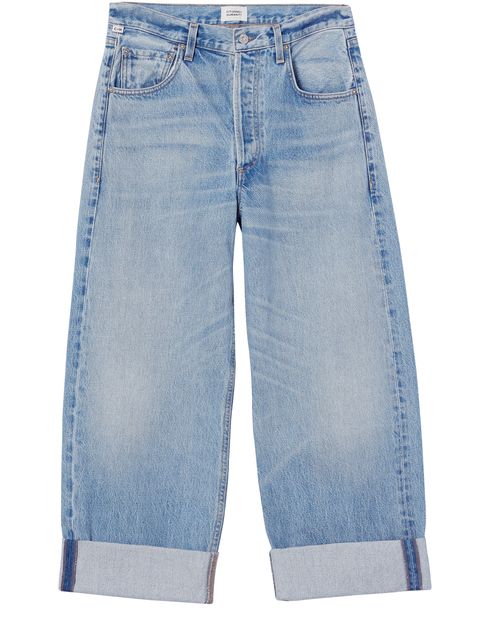 Introducing Citizens of Humanity's Ayla baggy jeans, where style meets comfort. Featuring a buttoned and concealed zipper closure, these jeans boast a back leather logo and contrast stitching. With belt loops, a loose fit, and ankle-length denim, they offer a low-waisted, five-pocket style perfect for modern wardrobes.