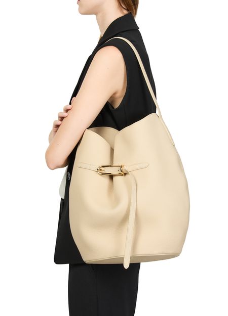 Reveal Liffner's belted large bucket bag, crafted from sumptuous suede with a single handle for effortless carrying. The gold finish hardware and contrast stitching highlight its refined design, while a spacious interior and zippered pocket offer practical elegance for modern lifestyles.