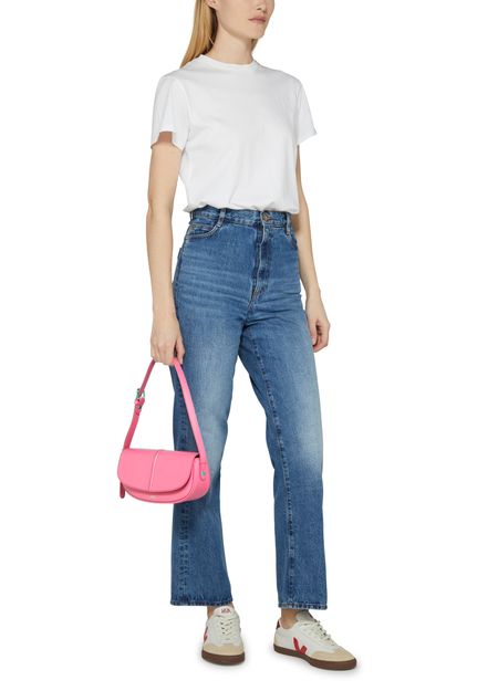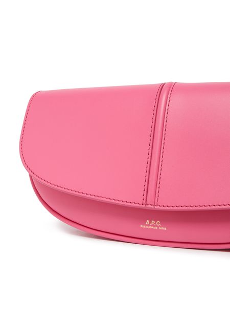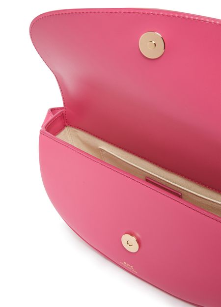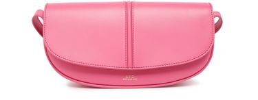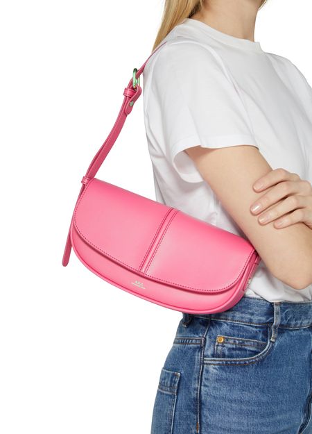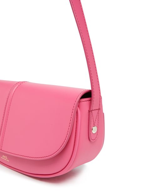 APC's Betty shoulder bag features a snap-button fastening and flap closure for security. The front logo is accented with gold letters for a touch of luxury. It is designed to be worn on the shoulder with its thin, adjustable strap. The open interior pocket allows for easy organization of essentials.