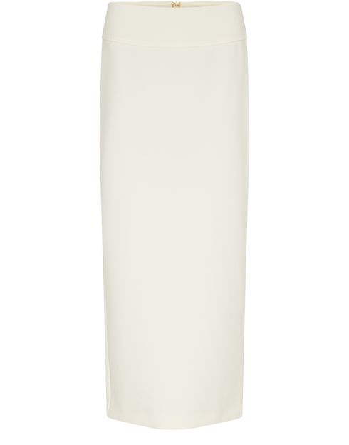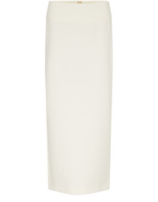 Max Mara's Blocco midi skirt showcases a sleek pencil silhouette with a concealed back zipper closure for a polished finish. Visible stitching adds a touch of sophistication, making it a versatile piece for any occasion. Effortlessly transition from day to night while exuding elegance and confidence in this timeless design.