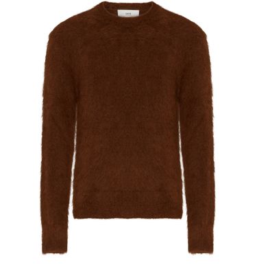 Ami's Brushed crew neck sweater showcases a regular length with long-sleeved design and cuffed sleeves for a cozy fit. The unique fur detail adds a touch of luxury, while the appliquéd logo and logo at the back label highlight the brand's signature style, making it a statement piece for any wardrobe.