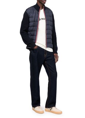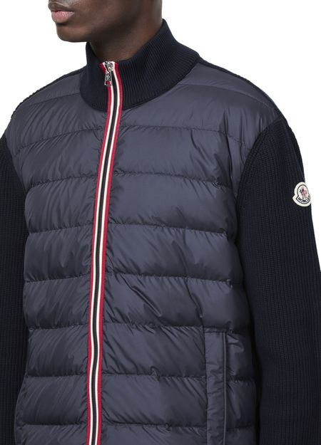 Moncler's Cardigan showcases a short, long-sleeved silhouette with a high neck and a convenient zipper closure. Its padded texture offers exceptional warmth, making it ideal for chilly days. With side welt pockets for added functionality, this puffer jacket combines style and practicality, perfect for urban adventures and outdoor escapades.