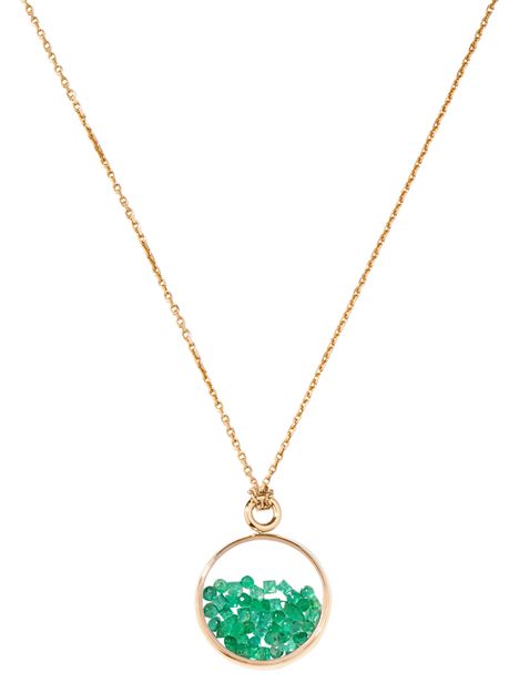 Jewelry becomes a part of everyday life thanks to the Parisian brand Aurélie Bidermann and this Chivor emerald pendant. This iconic piece features pendant that doubles a treasure chest filled with dark green emeralds. It symbolizes the union of innovative designs and artisanal French techniques.