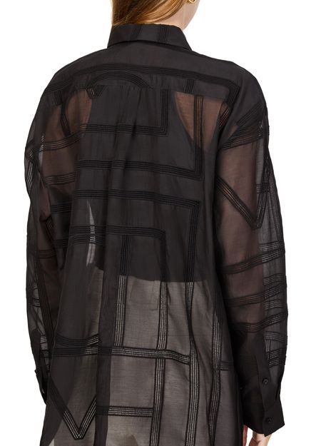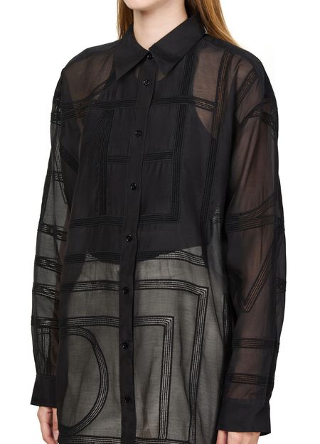 Celebrate Toteme's classic crochet shirt with its long-sleeved design and cuffed sleeves. The loose fit and front buttoned closure create an elegant silhouette, while visible stitching and a sheer lining add a touch of sophistication. Pair this versatile top with tailored pants for an effortlessly chic look.