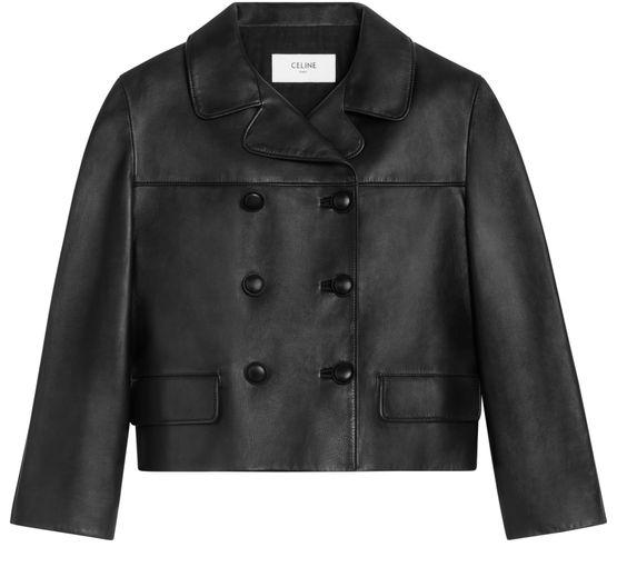 Unveil Celine's cropped jacket in soft lambskin, a classic fit masterpiece featuring a notch collar. This stylish piece boasts a cropped length with 2 flap pockets and 6 covered buttons, perfect for a modern wardrobe.