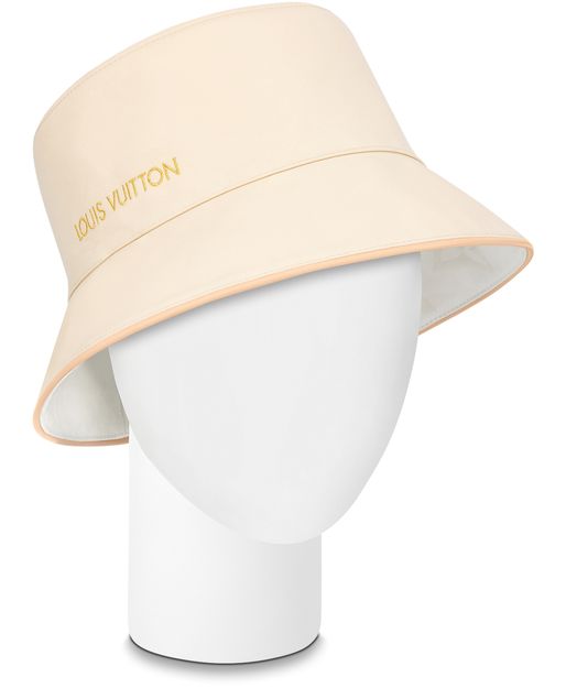 Stylish and versatile, the reversible Dailygram bucket hat is sure to become an everyday essential. One side features a tone-on-tone XXL Monogram jacquard weave for a contemporary signature look. Turned inside out, it reveals a gold embroidered Louis Vuitton signature for a more classic feminine effect. Natural cowhide piping adds a luxurious finishing touch.