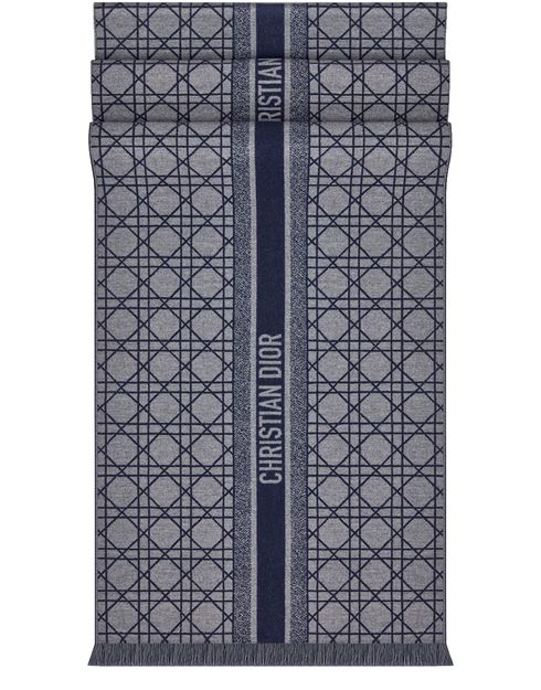 Discover Dior's cannage scarf, featuring contrasting jacquard bands adorned with the iconic 'CHRISTIAN DIOR' signature. This elegant piece is completed with fringed edges, adding a sophisticated touch to your style.