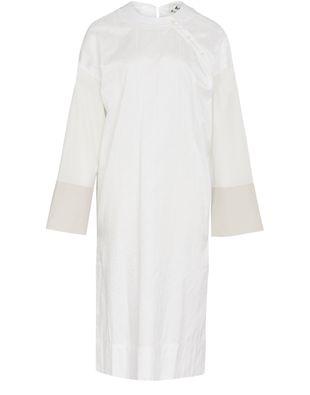 The Donelle dress by Acne Studios has a button fastening. It features wide sleeves and a large lapel. This shirt dress is perfect with wide trousers.
