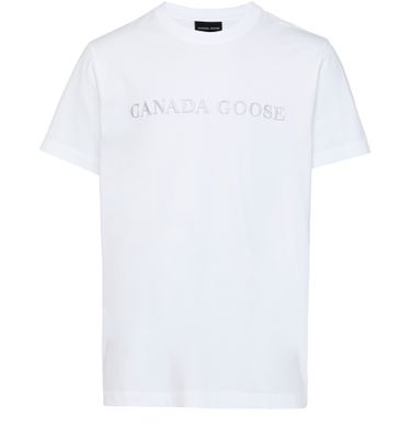 Canada Goose's Emersen embroidered wordmark t-shirt showcases a classic short-sleeved design with a comfortable crew neck. The chest logo, featuring an appliquéd logo, adds a touch of sophistication, while the visible stitching highlights the craftsmanship. Perfect for casual outings, this t-shirt effortlessly combines style and functionality.