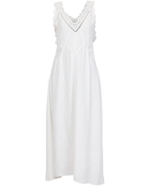 Embrace Isabel Marant's Freda long dress, a stunning maxi dress featuring a loose fit that gracefully drapes with sleeveless elegance. The V-neck design, adorned with exquisite lace details and scalloped edges, offers a modern allure. Perfect for any occasion, this dress seamlessly blends style with sophistication.