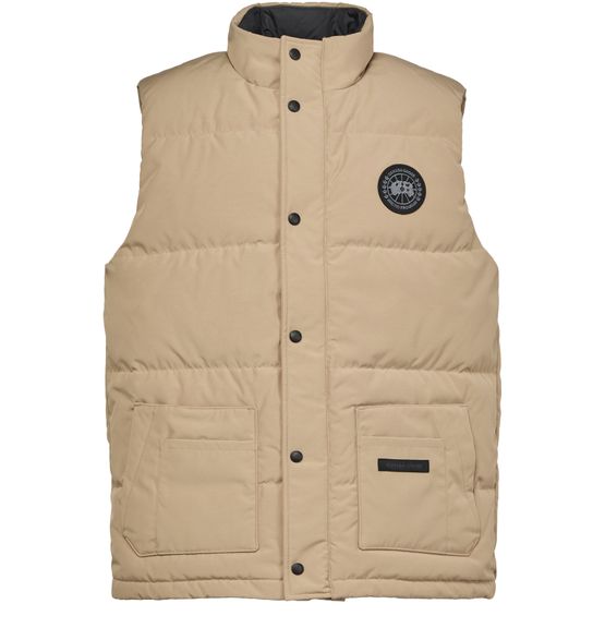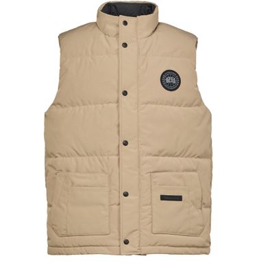 Canada Goose's Freestyle vest showcases a sleeveless gilet design with a front buttoned closure and a high neck for added warmth. Featuring a prominent chest logo, this short vest is equipped with large side pockets, perfect for storing essentials while embracing the outdoors in style and comfort.
