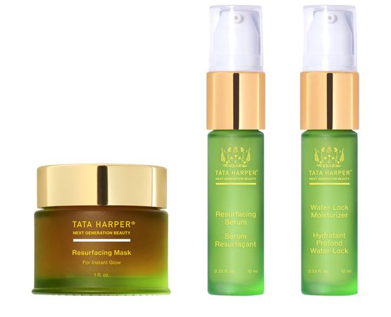 This 3-step green routine exfoliates, brightens, and hydrates for bouncy, glowing skin that's smooth to the touch. These green beauty heroes work better together to give you your healthiest looking skin yet. Resurfacing Mask instantly restores radiance and polishes pores with white willow bark and pomegranate enzymes. Resurfacing Serum gives you a daily dose of glow with AHAs, BHAs, and vitamin C from kakadu plum....