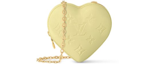 Made from Monogram Vernis leather, the gorgeous Keep My Heart bag with its heart-shape features a delicate removable and adjustable golden chain embellished with a LV Circle charm. The leather features the Monogram motif embossed onto the shiny surface. The Keep My Heart fits a set of keys and earbuds.