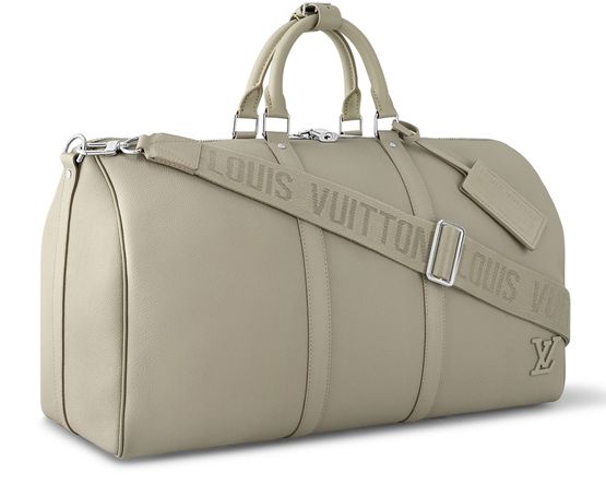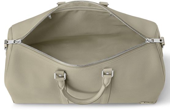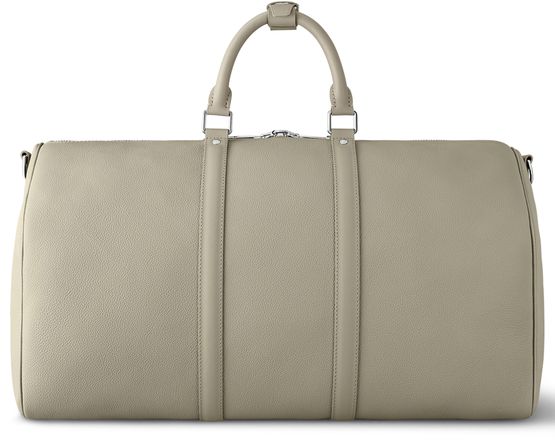 Part of the LV Aerogram collection, this Keepall Bandoulière 50 bag is made from cowhide leather with matching leather trim and top handles. It features the Aerogram name tag and a wide “Louis Vuitton”-signed textile strap. The bag’s understated elegance is completed by the discreet, tone-on-tone “LV” initials on the lower corner.