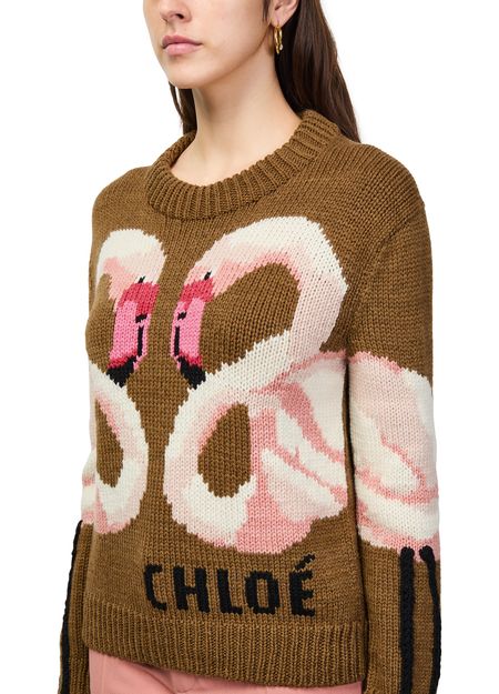 Reveal chloe's logo sweater, featuring a round neck and long sleeves for a refined silhouette. The animal print and front logo add a bold statement, while ribbed details and visible stitching elevate its modern appeal. Perfect for versatile styling, this sweatshirt transitions seamlessly from day to night.