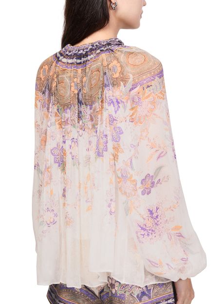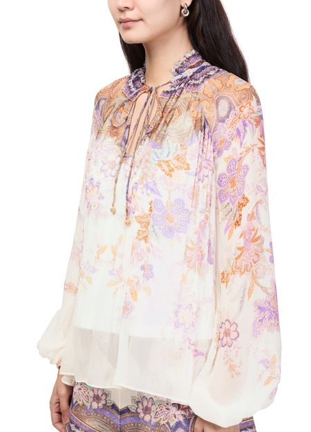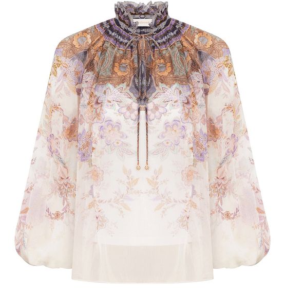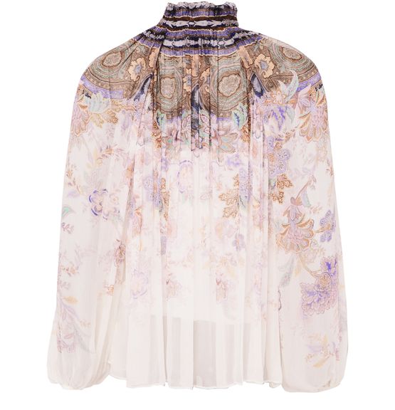 Reveal Zimmermann's Luna Billow blouse, a statement top featuring a high-neck and long sleeves. The floral print and paisley pattern add a vibrant touch, while the refined silhouette ensures effortless elegance. Perfect for elevating both casual and sophisticated looks with a modern, artistic flair.
