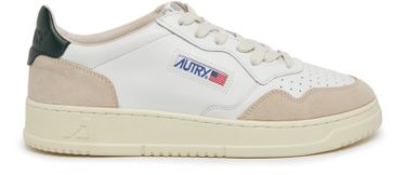 Autry's Medalist low sneakers feature a round toe, closed design, and thick outer sole. They come with a logo-printed insole and a logo at the back. The sneakers also have a logo on the tongue, printed logo, embroidered logo, and logo on the side.
