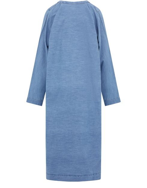 Punctuated by godets, Valentino's denim maxi dress has long sleeves and wide stitching bordering its hems.