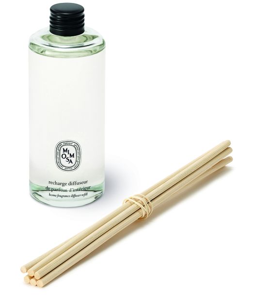Home fragrance diffuser refill with 6 natural rattan reeds. The velvety and honeyed notes of the mimosa flower.