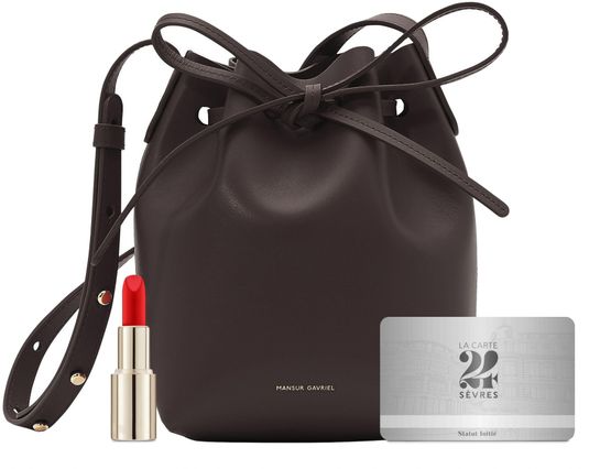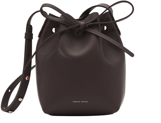 This mini mini bucket bag is a miniature version of Mansur Gavriel's most iconic bag. The sleek design and gold-tone rivets on the strap make it both practical and feminine.