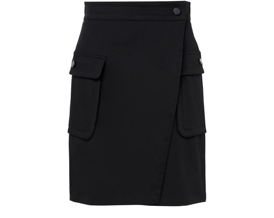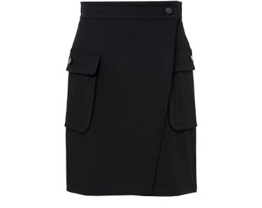 • Description : Mini length, flap pockets, button fastening, wrap skirt.